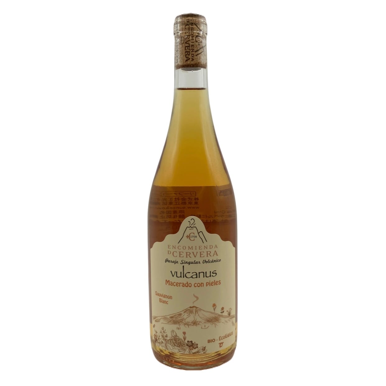 1741年にフィリップ5世から「エンコミエンダ」の称号を授かった由緒ある農園で、敷地内には天然記念物の火山「マール・デ・セルベラ」があり、標高750〜850mの火山性土壌が、ワインに独特のミネラル感を与えています。熟した桃やマーマレード、桃のシロップ漬けを思わせる甘やかなアロマに、火山由来のミネラルがしっかりと寄り添う味わい。余韻も長く、スパイスを効かせた鶏肉料理や焼き野菜との相性も抜群です。